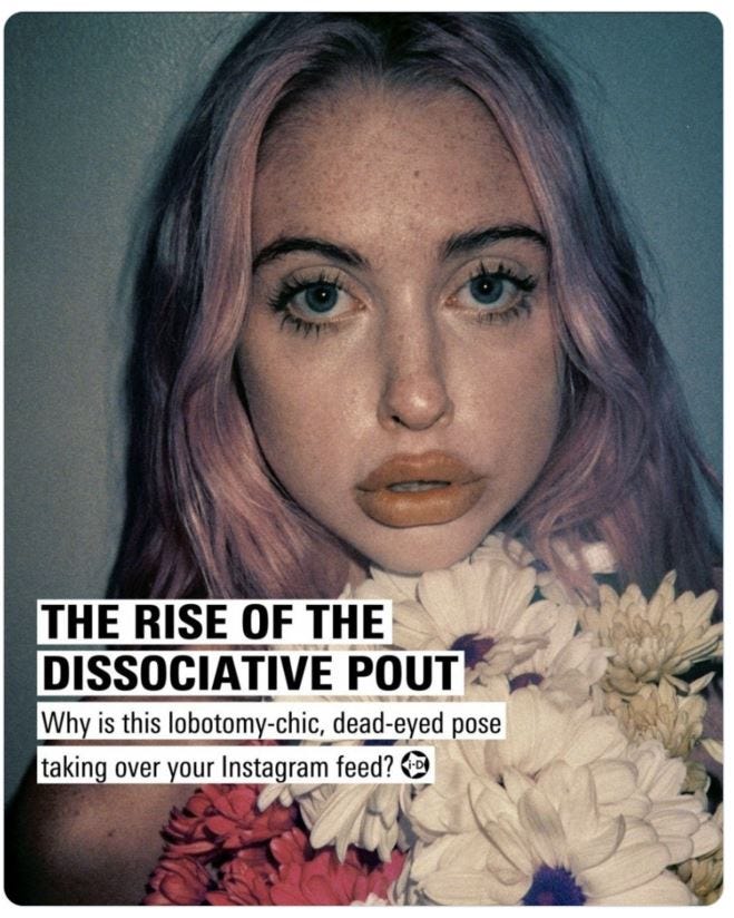 Yes there’s nothing sexier or cooler than a facial expression associated with a reaction to a horrific life-altering experience. Nothing more chic than a soulless stare likened to a post-op patient of brain destruction surgery.